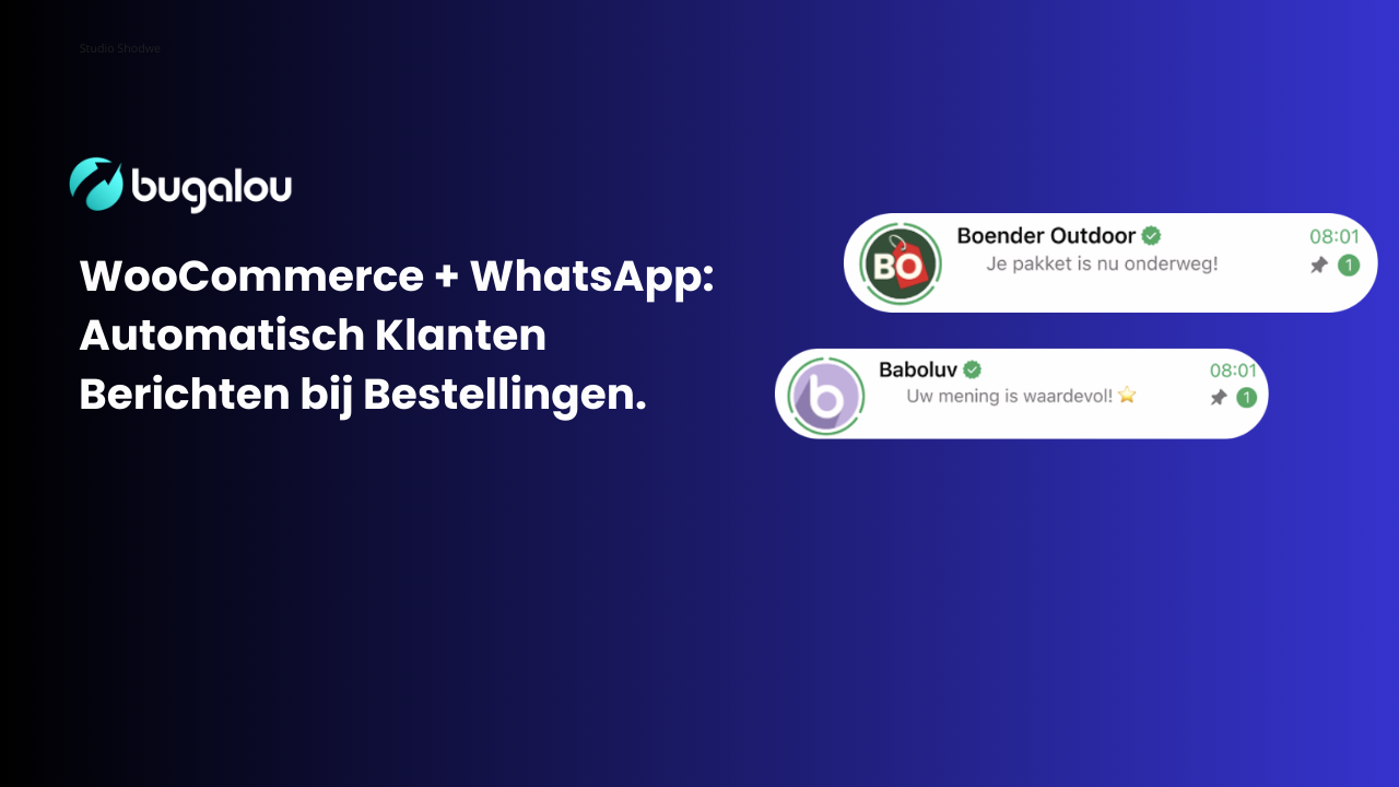 Shopify + WhatsApp is de combinatie die klanten verwachten in 2026. Met Bugalou automatiseer je het beantwoorden van klantvragen, stuur je proactieve updates over bestellingen en beheer je alles vanuit één gedeelde inbox.